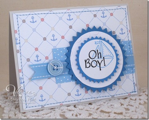 I have the honour of being a part of a very special blog hop today :) If you’ve arrived from Lori Craig's blog, you are right on track. AND if you haven’t heard, Julee Tilman, the owner and uber talented designer of Verve Stamps, and her husband Mark are expecting identical twin boys on…guess when? My birthday!! Yes, St. Patty’s Day is the official due date! However, as we know, babies come when they come but I couldn’t resist adding a little shamrock to my card in hopeful anticipation :) I also created my own sentiment, one I love, but got to add “4 feet” instead of the usual “2 feet.” We are using this week’s Mojo Monday sketch and offering Julee and Mark some parenting advice.