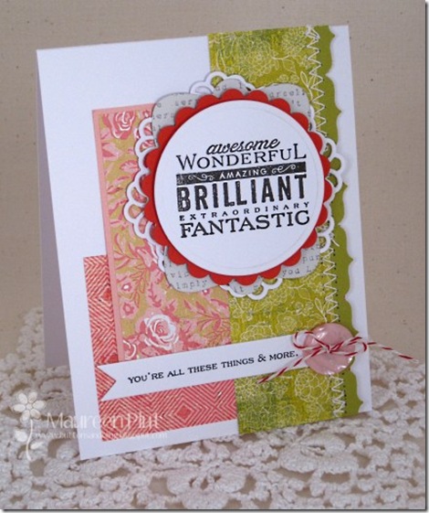 Good morning! Well it’s back at it after a lovely 4 day weekend. It was time full of stamping and unpacking! Today’s card is for this week’s My Favourite Things Wednesday sketch. I did sneak in an MFT stamp underneath the scalloped circle, but none of the MFT sentiments I have would really fit this sketch. So I inked up my new PTI Movers and Shakers stamps. Thanks so much for stopping by! Be sure to come by again tomorrow for a sneak peek at some new Verve stamps!